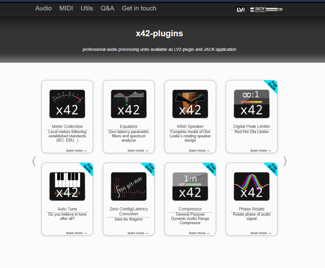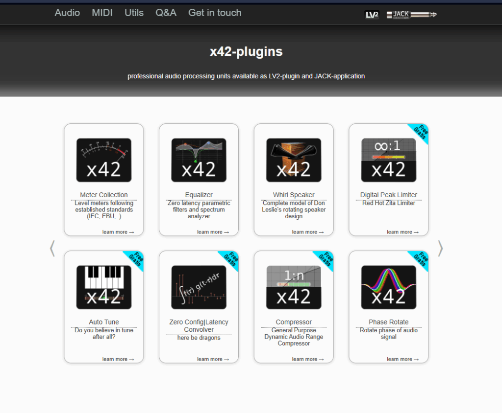 x42 Pluginとは、Robin Gareus氏が開発した、主にLV2形式で提供されるオープンソースの高品質なオーディオ/MIDIプラグインのコレクション(x42-plugins)のことです。